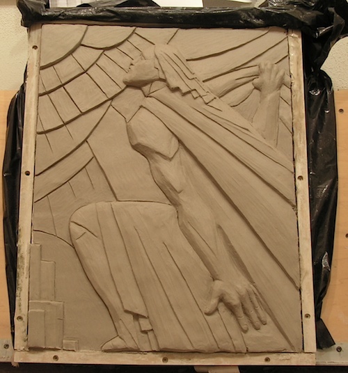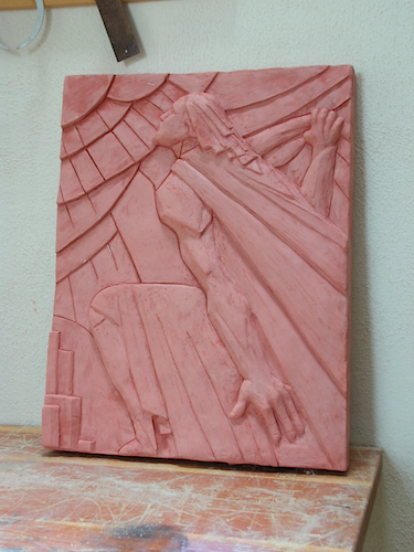 A client ordered a D8 panel in the red terracotta, and before I crate it for shipping I thought i would snap a picture of it.