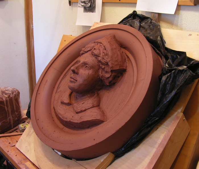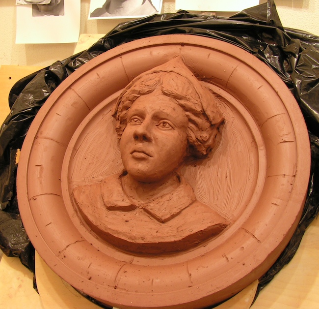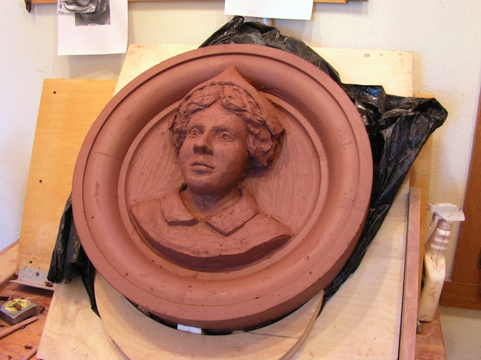 Here is another difference- the pressed-clay sculptures are completely gone over with sculpture tools to add back any fine details, accent others, and generally clean up the whole surfaces, this is exactly the same processes used to create all of the architectural terracotta found on old buildings my work is based upon, the only difference between how these sculptures were made in 1890 and how I am making these pressed-clay sculptures is that in the 1890s to speed up production they introduced live steam under pressure to the open backs of the clay sculptures. I don’t have access to large amounts of live steam unfortunately, so the drying out process must be slower to prevent cracking and warping.