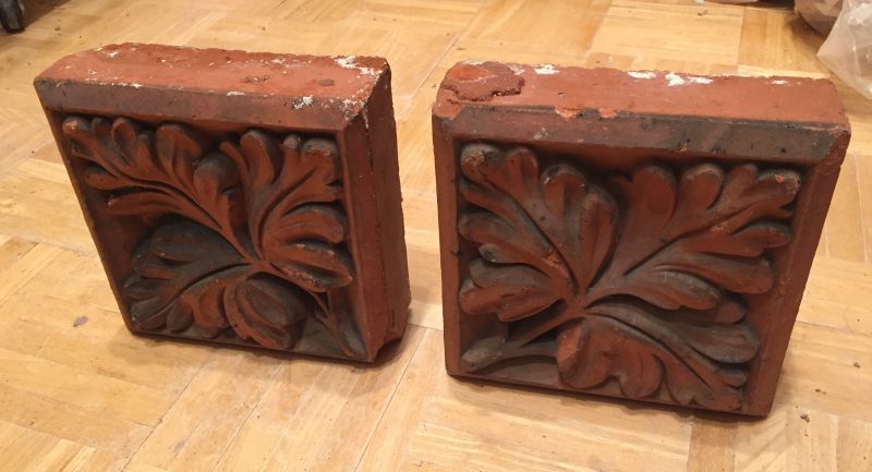 I bought 2 of these red terracotta blocks that came from a building in Newark NJ, these would date back to the 1880s. No identification marking, numbers or anything on them as is typical of these pieces in that decade.