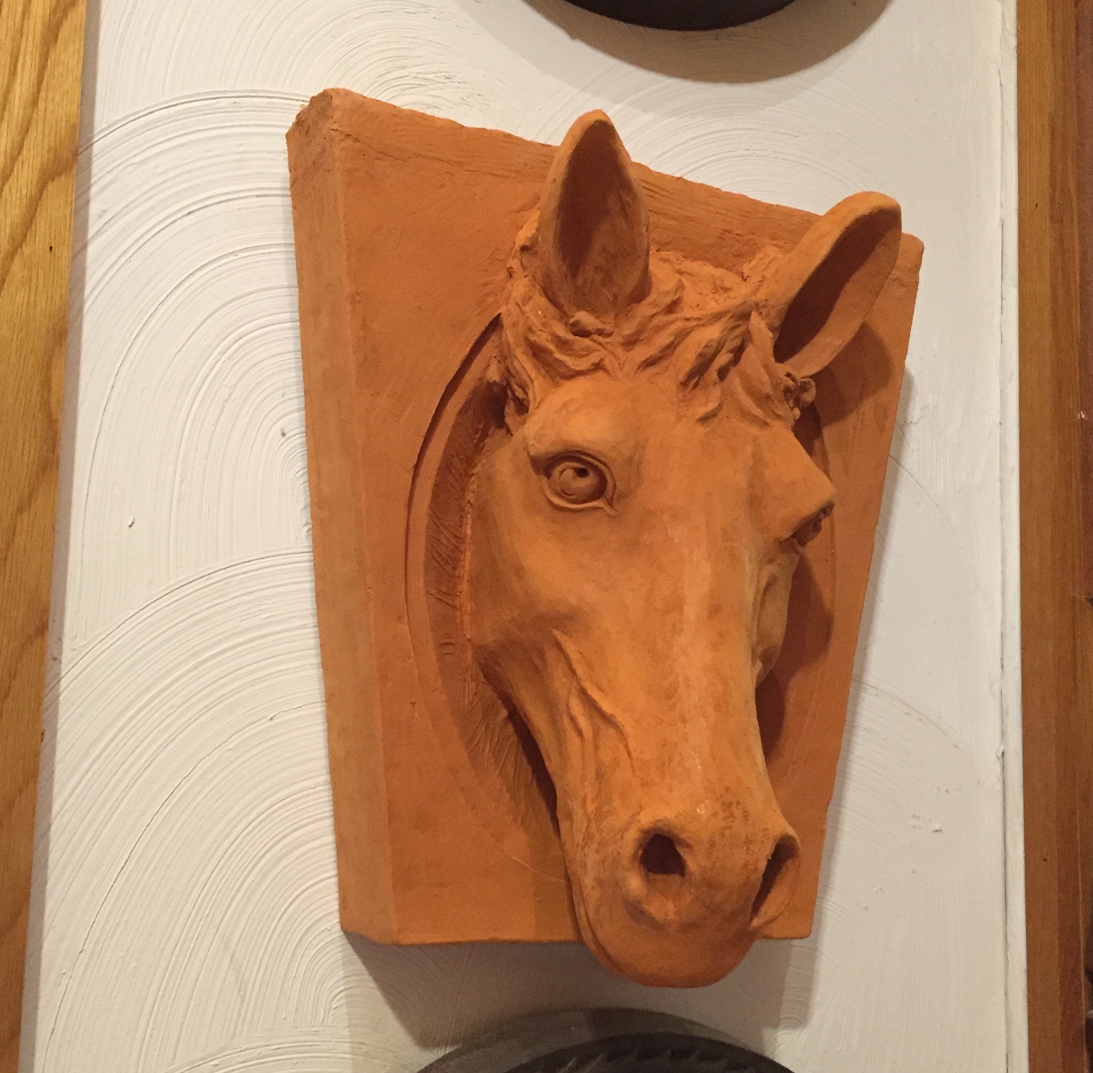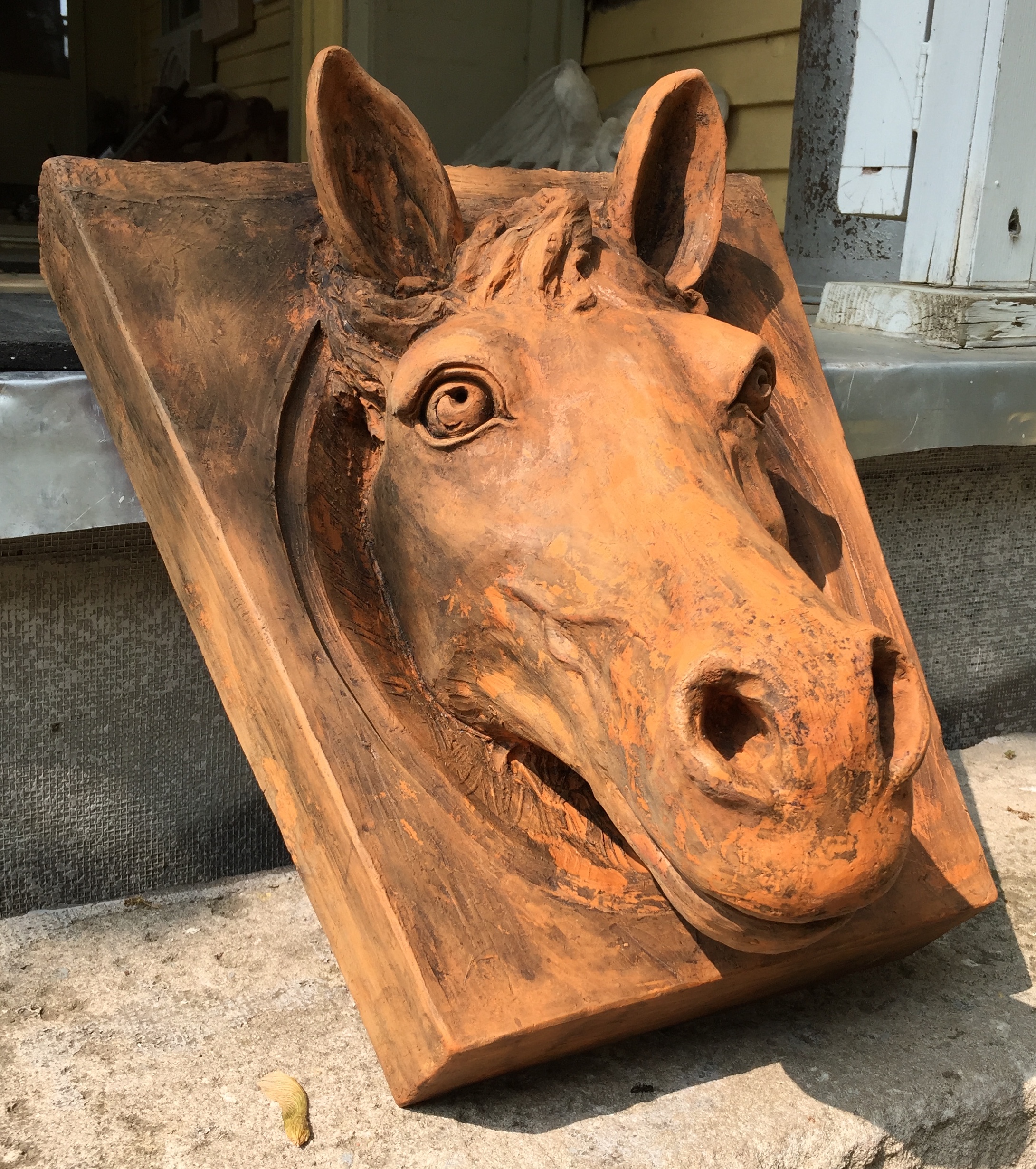 The original horse head keystone is still on the building and formed the basis of my model after it.