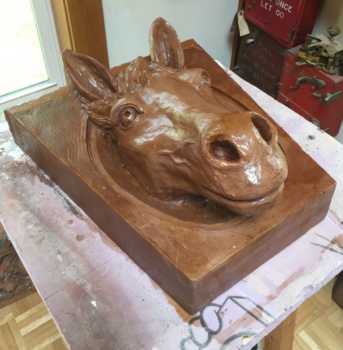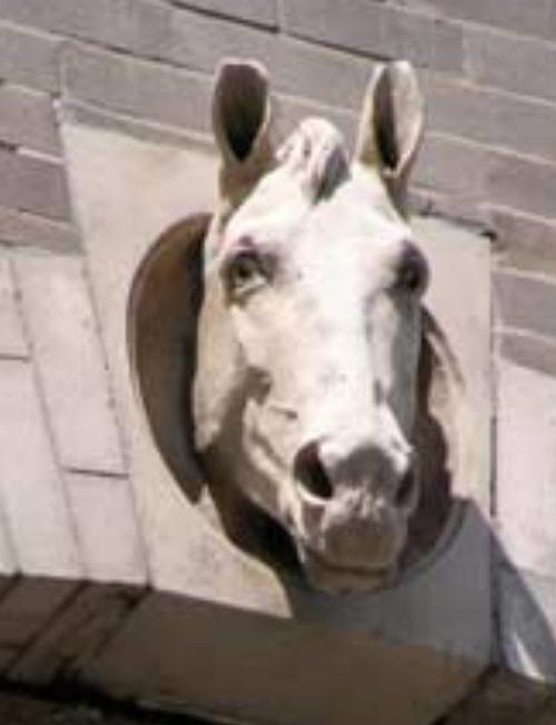 The original horse head keystone is still on the building and formed the basis of my model after it.